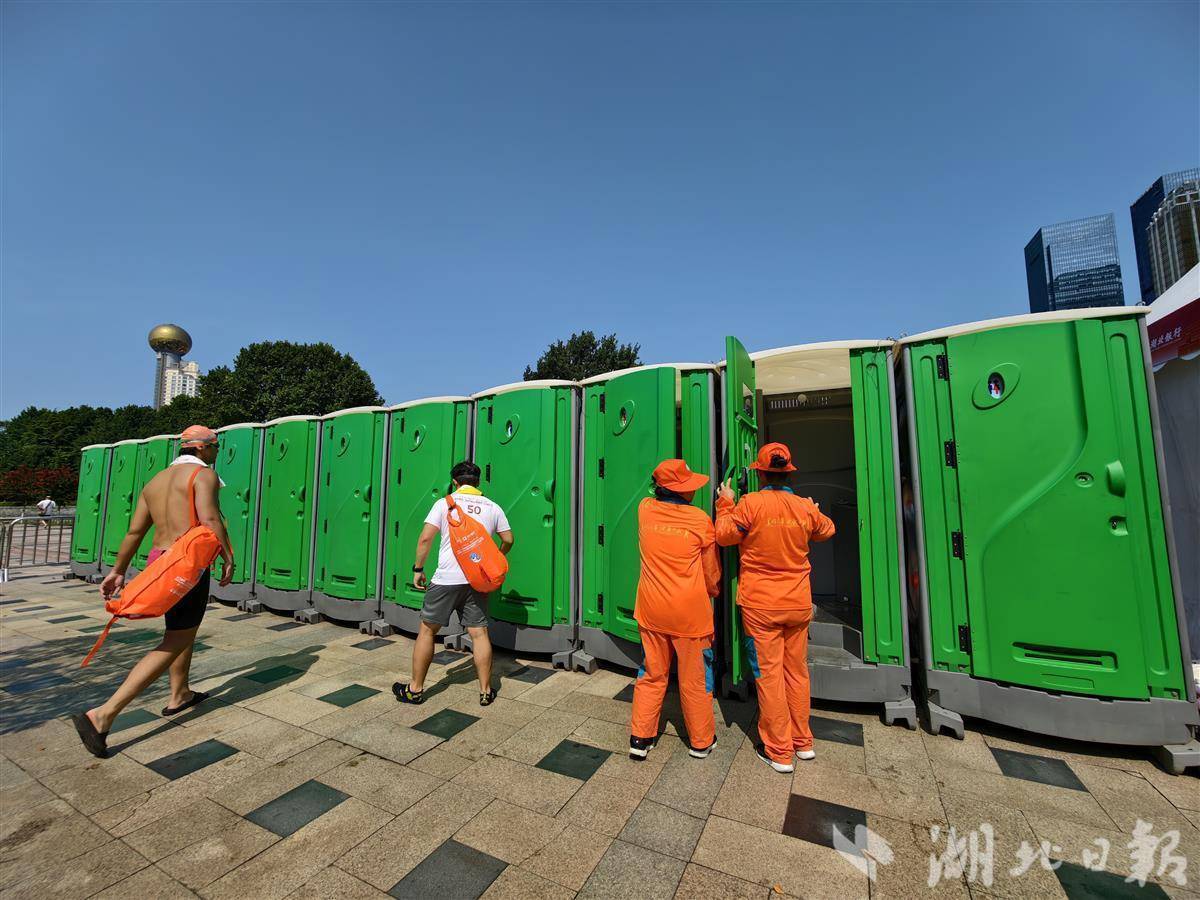 赛事的人性化服务不止于此。为解决参赛者和观众的“方便”之忧,环卫部门在起水点设置了12座移动公厕,内部厕纸、洗手液等必需品一应俱全,两名保洁员在现场随时清理,确保公厕环境卫生整洁。